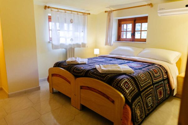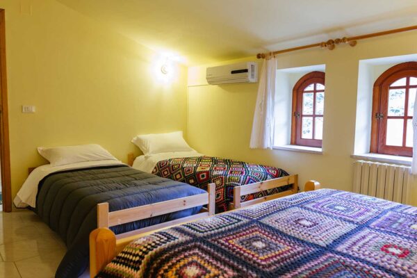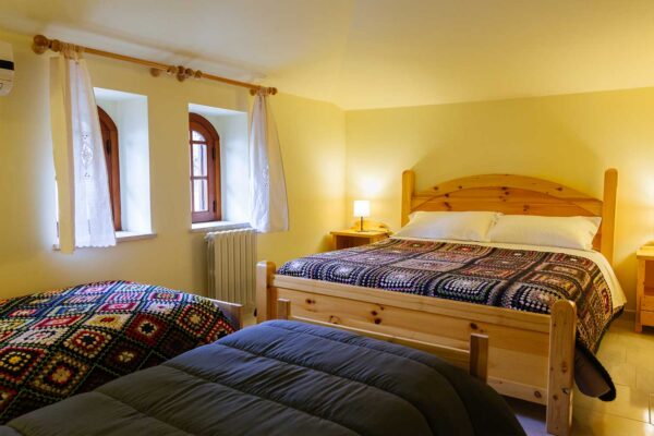 Dotata di quattro comodi letti, la camera quadrupla è perfetta per le famiglie numerose che desiderano condividere una piacevole vacanza all’insegna del turismo sostenibile.